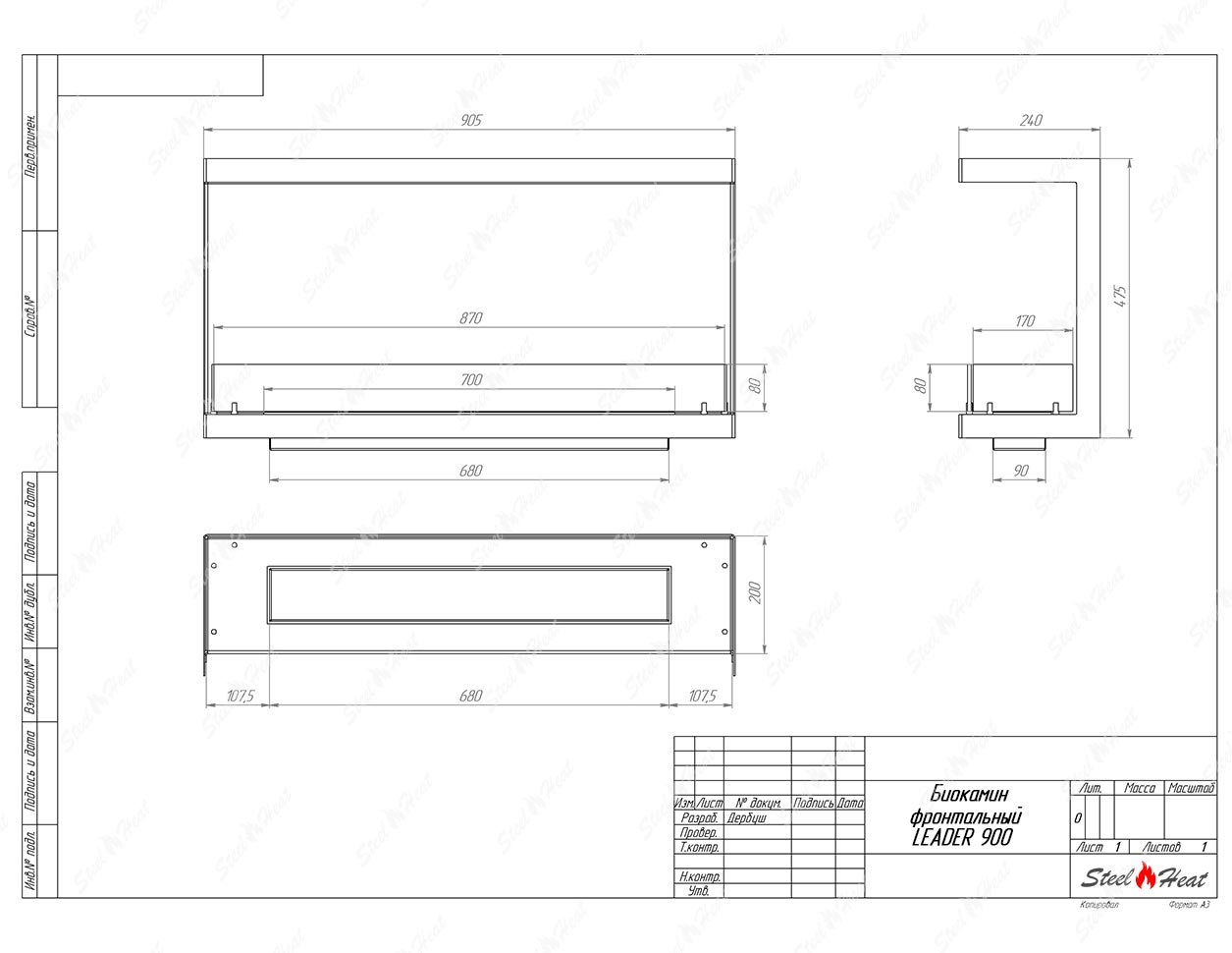 Встраиваемый Биокамин фронтальный SteelHeat Leader 900 предназначен для встраивания в глухие ниши из гипсокартона, кирпича, пеноблоков, бетона.