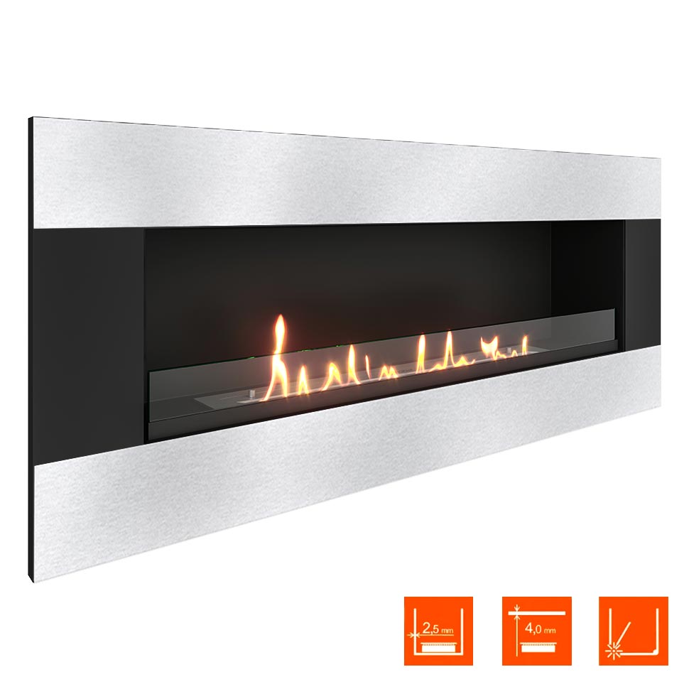 - горизонтальные шлифованные накладки стального цвета, благодаря которым биокамин обретает индивидуальность и более стильный внешний вид.